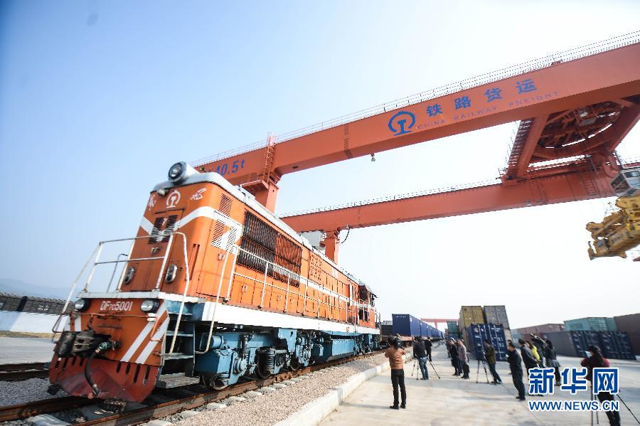 11月18日,首趟“义新欧”国际货运班列即将从义乌货运站出发。新华社记者 徐昱 摄