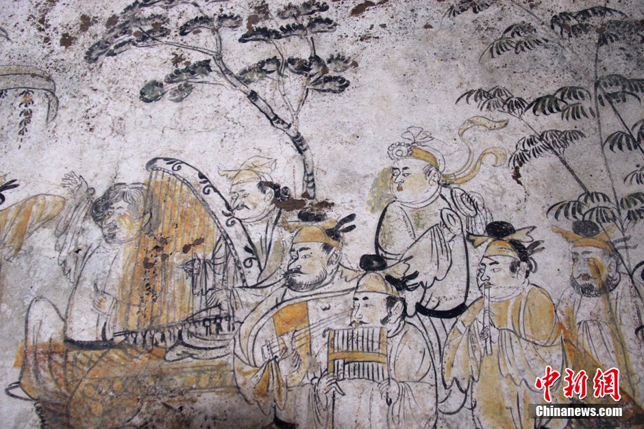 西安发掘唐宰相韩休墓 现唐代最早独屏山水壁画