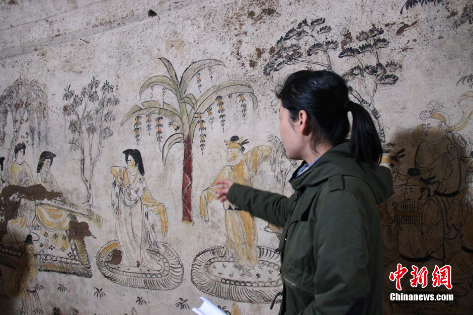 西安发掘唐宰相韩休墓 现唐代最早独屏山水壁画