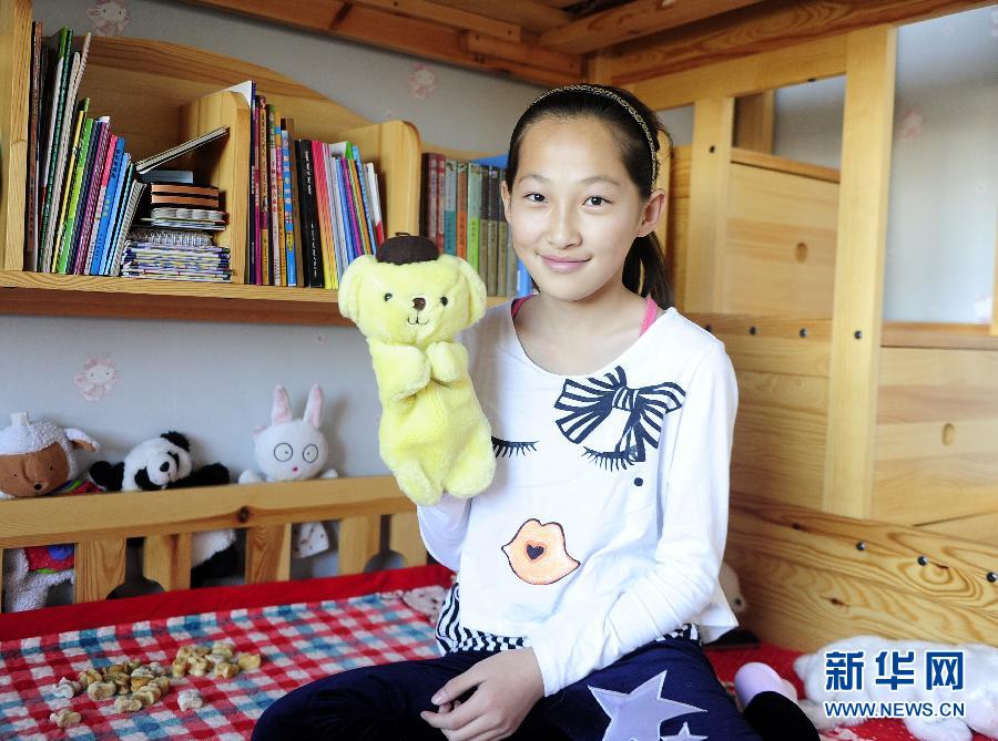 娜荷芽展示她的“会说英语”的玩具(11月12日摄)。娜荷芽是内蒙古锡林浩特市蒙古族第二小学六年级学生。2009年国际儿童日前夕新华社曾报道过她的英语梦。如今,娜荷芽已经获得全国青少年英语口语大赛金奖及最佳表现奖。老师说她不光英语好,汉语也学得好。娜荷芽说:“人生必须要有规划,没有规划就没有前途。”她说,自己的课余时间和周末都会做规划,既有学习的时间,也有玩的时间。谈及梦想,她说,长大后要上哈佛大学,将来要到大学讲台讲哲学。新华社记者 邵琨摄