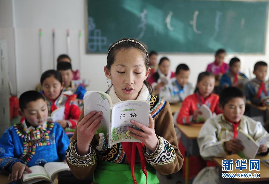 娜荷芽在课堂上朗诵汉语文(11月12日摄)。娜荷芽是内蒙古锡林浩特市蒙古族第二小学六年级学生。2009年国际儿童日前夕新华社曾报道过她的英语梦。如今,娜荷芽已经获得全国青少年英语口语大赛金奖及最佳表现奖。老师说她不光英语好,汉语也学得好。娜荷芽说:“人生必须要有规划,没有规划就没有前途。”她说,自己的课余时间和周末都会做规划,既有学习的时间,也有玩的时间。谈及梦想,她说,长大后要上哈佛大学,将来要到大学讲台讲哲学。新华社记者 邵琨摄