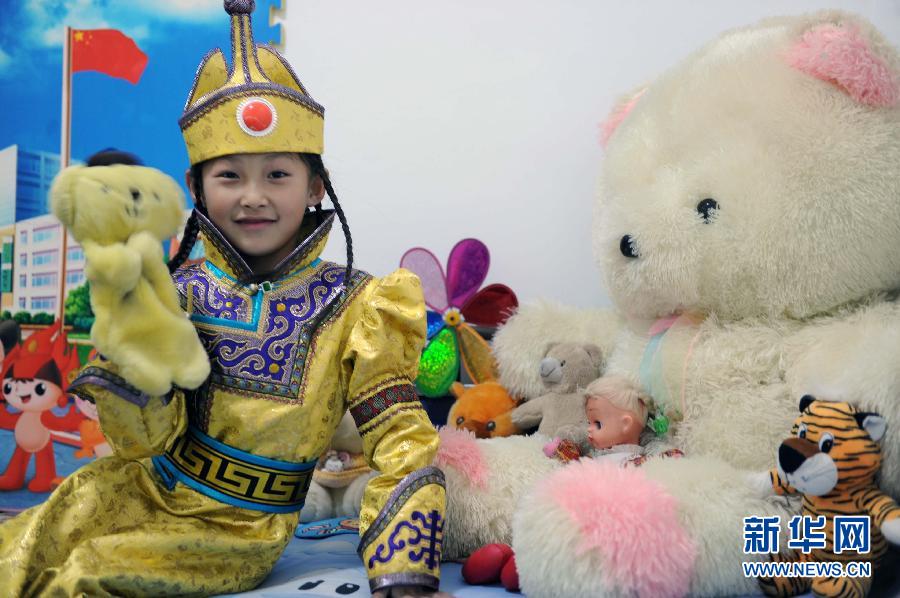 这是记者于2009年10月23日拍摄的娜荷芽,她对自己的“会说英语的”玩具爱不释手。娜荷芽是内蒙古锡林浩特市蒙古族第二小学六年级学生。2009年国际儿童日前夕新华社曾报道过她的英语梦。如今,娜荷芽已经获得全国青少年英语口语大赛金奖及最佳表现奖。老师说她不光英语好,汉语也学得好。娜荷芽说:“人生必须要有规划,没有规划就没有前途。”她说,自己的课余时间和周末都会做规划,既有学习的时间,也有玩的时间。谈及梦想,她说,长大后要上哈佛大学,将来要到大学讲台讲哲学。新华社记者 张领摄