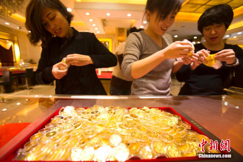 11月17日晚,山西太原当地一金店为庆祝即将到来的店庆,用千枚金币打造了一条12米长、1米宽的黄金大道,让民众从上面走过,沾染踩金纳福的喜气。中新社发 张云 摄