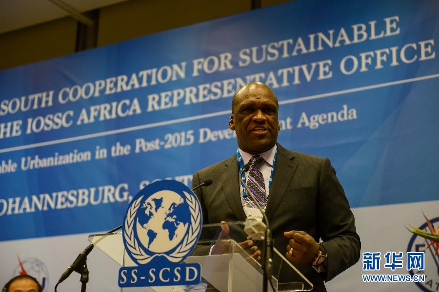 11月17日,南南可持续发展指导委员会主席约翰·威廉·阿什在南非约翰内斯堡举行的南南合作可持续发展高级论坛上致辞。当日,南南合作可持续发展高级论坛在南非约翰内斯堡举行。此次论坛旨在呼吁发展中国家建立政府与民间合作的可持续发展机制,近200名高级别政府官员、常驻联合国代表、联合国高级官员、工商界领袖、学术界以及其他社会各界代表参加了此次论坛。 新华社记者翟健岚摄