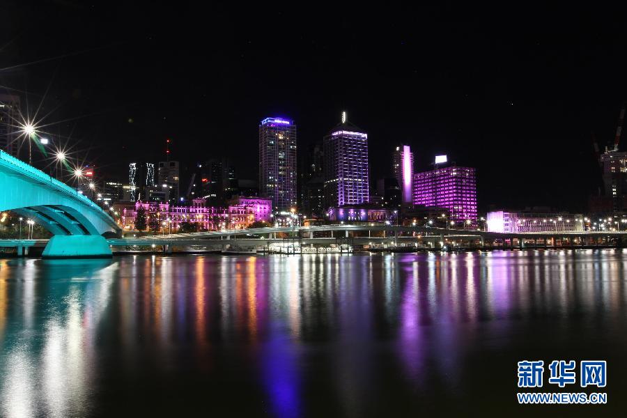这是11月14日在澳大利亚布里斯班市区拍摄的彩灯。 二十国集团峰会将于11月15日至16日在布里斯班市会展中心举行。新华社记者金林鹏摄