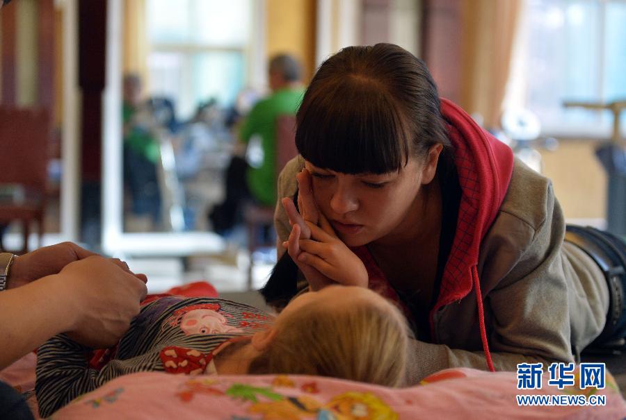 母亲看着阿丽娜接受按摩治疗(11月11日摄)。今年6岁的阿丽娜是一位来自俄罗斯符拉迪沃斯托克的脑瘫儿童。10月27日,母亲娜莎带她来到中国鞍山市汤岗子医院进行为期一个月的康复治疗。这里治疗效果好,而且费用较为低廉,这已是她们第三次来中国进行康复治疗了。阿丽娜的脑瘫症状是在她6个月的时候,因为打疫苗发生反应而影响脑部发育造成的。在汤岗子医院,通过中药烘烤,脑循环治疗仪,泥疗和温泉疗养,中医按摩等治疗手段,阿丽娜的病情有所好转。据医生介绍,阿丽娜的腰肌力量有所增强,人也变得开朗乐观。阿丽娜喜欢看书,喜欢看动画片,喜欢玩偶,喜欢做过山车,还特别喜欢海豚,她希望有一天能和海豚做一次亲密接触。 新华社记者 杨青摄