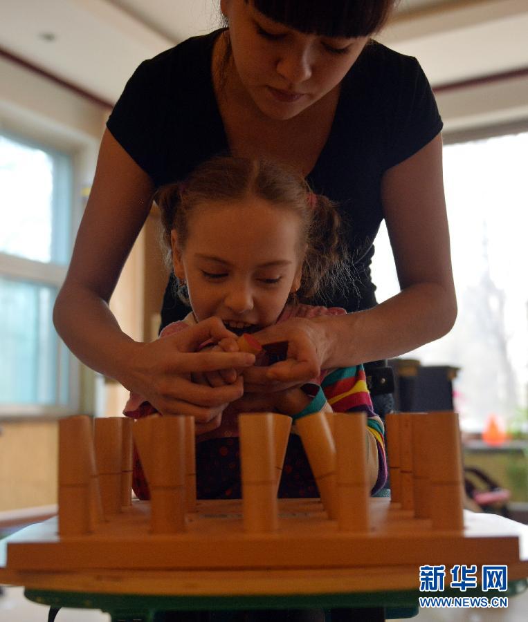 阿丽娜在进行康复游戏训练(11月11日摄)。今年6岁的阿丽娜是一位来自俄罗斯符拉迪沃斯托克的脑瘫儿童。10月27日,母亲娜莎带她来到中国鞍山市汤岗子医院进行为期一个月的康复治疗。这里治疗效果好,而且费用较为低廉,这已是她们第三次来中国进行康复治疗了。阿丽娜的脑瘫症状是在她6个月的时候,因为打疫苗发生反应而影响脑部发育造成的。在汤岗子医院,通过中药烘烤,脑循环治疗仪,泥疗和温泉疗养,中医按摩等治疗手段,阿丽娜的病情有所好转。据医生介绍,阿丽娜的腰肌力量有所增强,人也变得开朗乐观。阿丽娜喜欢看书,喜欢看动画片,喜欢玩偶,喜欢做过山车,还特别喜欢海豚,她希望有一天能和海豚做一次亲密接触。 新华社记者 杨青摄