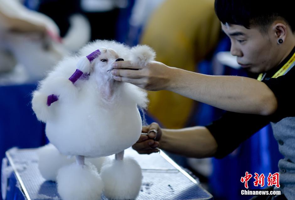 11月17日,第十八届中国国际宠物水族用品展览会中国国际展览中心拉开帷幕。展会现场发布了“全球共享,统一品质”的全新品牌倡导,同时还首次在国际和国内市场同步发布旗下多支新品,现场也有不少萌宠享受到了高级别的美容待遇。中新社发 陆欣 摄