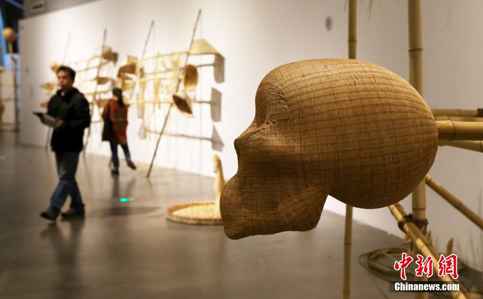 当代竹编艺术展亮相南京 造型奇特引遐想
