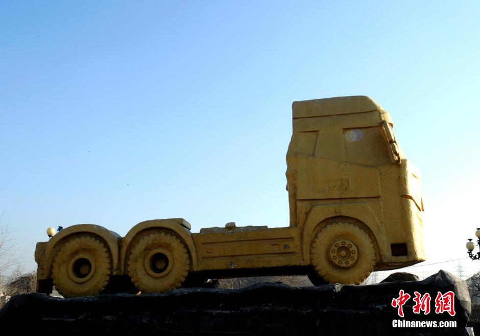 11月18日,一座全身涂满金黄色油漆的“土豪金”汽车雕塑矗立在长春市一小区内,吸引市民围观。 中新社发 张瑶 摄