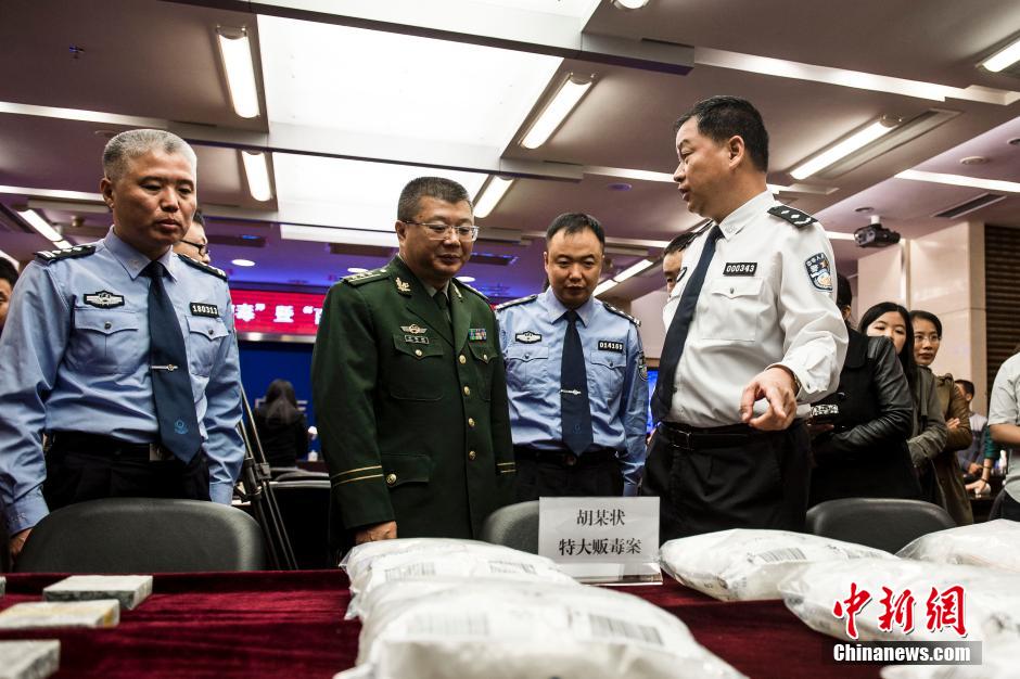 11月18日,广东省公安厅召开“雷霆扫毒”专项行动新闻发布会,通报了今年以来开展“雷霆扫毒”行动的工作成果。截至10月底,广东省共侦破毒品案件2.3万余起,缴获各类毒品超15吨,查处吸毒人员10.5万多人次。图为广东省公安厅发布会上警方展示收缴的毒品海洛因。中新社发 龙宇阳 摄
