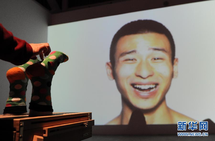 11月18日,一名参观者在体验互动作品《挠挠》。当日,作为第九届北京文博会的内容之一,“无界代码——2014国际青年新媒体艺术展”在北京拉开帷幕。科技手段的应用,赋予艺术新的活力和表现形式。新华社记者公磊摄