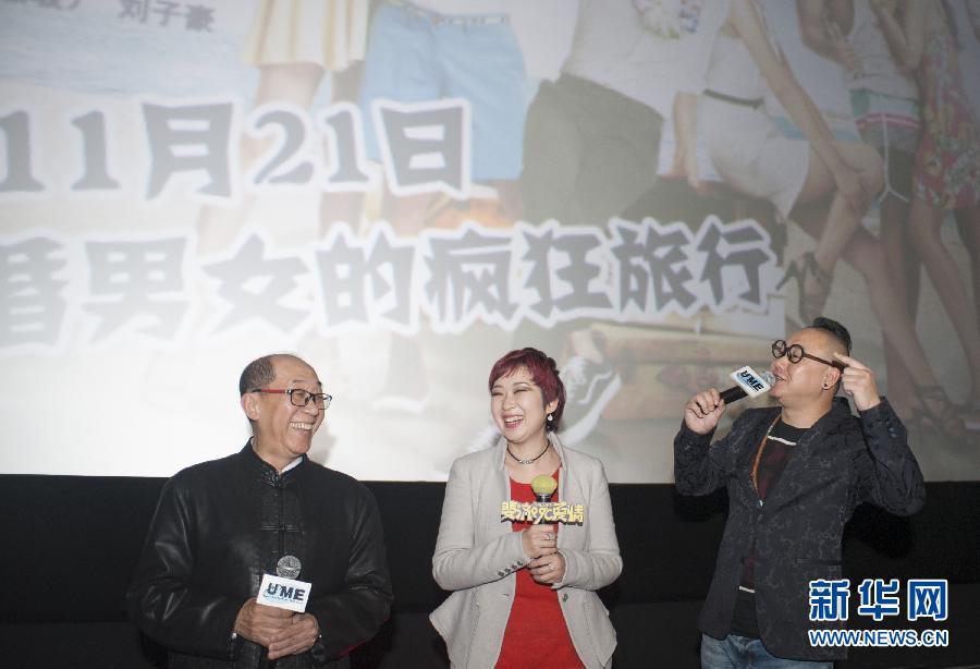 11月18日,电影《斐济99℃爱情》导演陶生(右一)携主创团队部分成员出席首映礼。当日,中斐合拍爱情轻喜剧电影《斐济99℃爱情》在北京举行首映礼。该片以当下年轻人的婚姻观为切入点,讲述了三对“恐婚”情侣在斐济开启的追爱旅程。据介绍,该片将于11月21日在全国院线公映。新华社记者 毕晓洋 摄