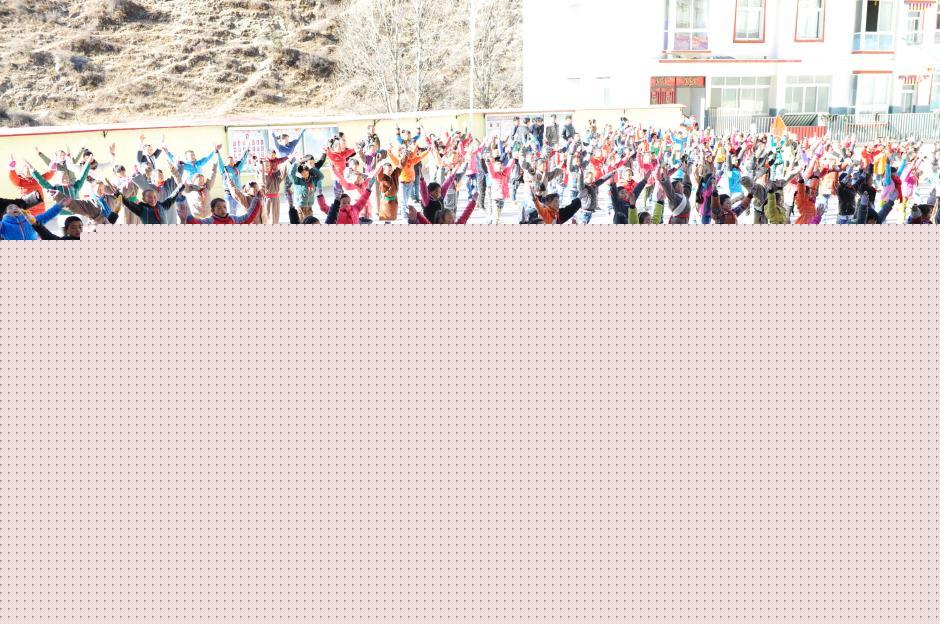 11月18日,记者来到四川省阿坝州壤塘县茸木达乡中心学校,探访这座高原小学师生们的生活。茸木达乡中心学校共有7个教学班,学生245名,教师23名,以藏语教学为主。开设了包括藏语文、藏数学、藏科学、藏美术、藏音乐、藏思想品德等课程。图为茸木达乡中心学校的学生在做课间操。中新社发 安源 摄