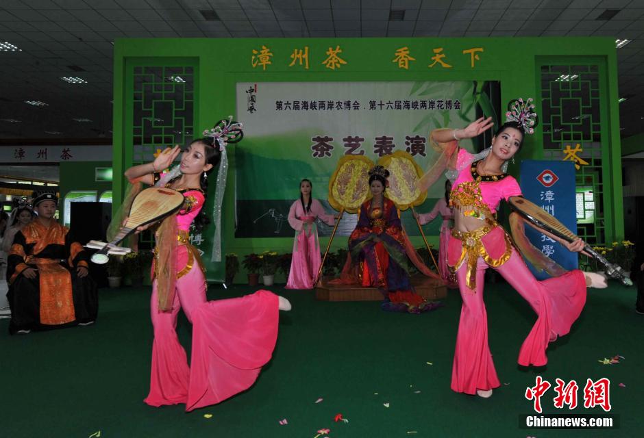 11月18日,在福建漳州第六届海峡两岸现代农业博览会上,一场独特的唐朝宫廷茶礼表演再现了中国悠久茶文化,吸引了许多市民驻足观赏。 张斌 摄