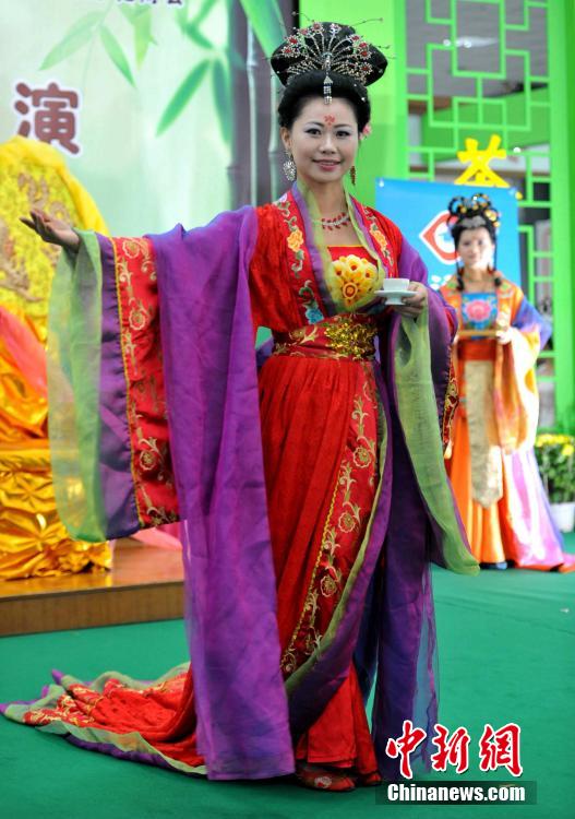 11月18日,在福建漳州第六届海峡两岸现代农业博览会上,一场独特的唐朝宫廷茶礼表演再现了中国悠久茶文化,吸引了许多市民驻足观赏。 张斌 摄