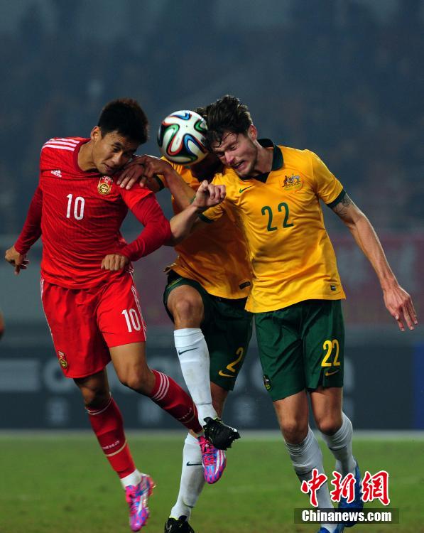 11月16日晚,U22国际青年足球邀请赛进入第二天赛事。中国国奥队迎来澳大利亚的挑战。澳大利亚国奥队以最强阵容出战,中国队最终以3比1取得比赛胜利。中新社发 张畅 摄