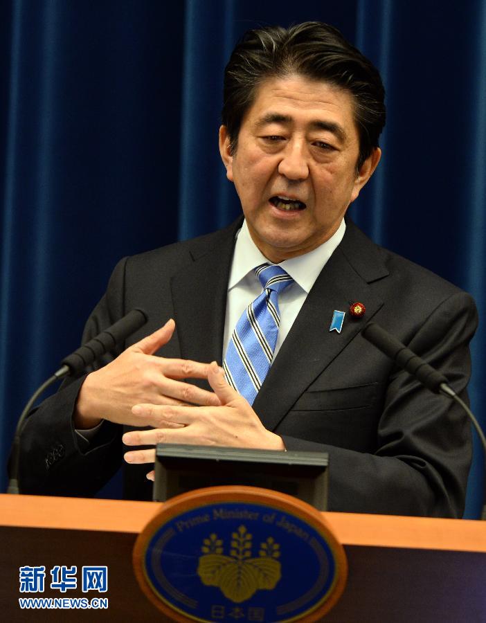 11月18日,在日本东京首相官邸,日本首相安倍晋三向记者发表讲话。 日本首相安倍晋三18日晚宣布,将于21日解散众议院并提前举行大选。新华社记者马平摄