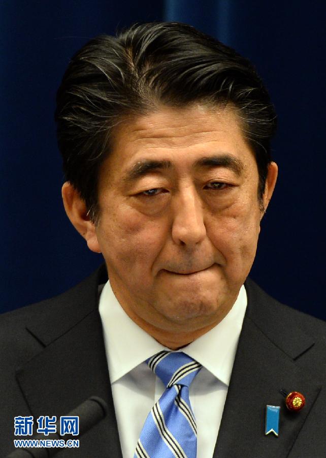 11月18日,在日本东京首相官邸,日本首相安倍晋三向记者发表讲话。 日本首相安倍晋三18日晚宣布,将于21日解散众议院并提前举行大选。新华社记者马平摄