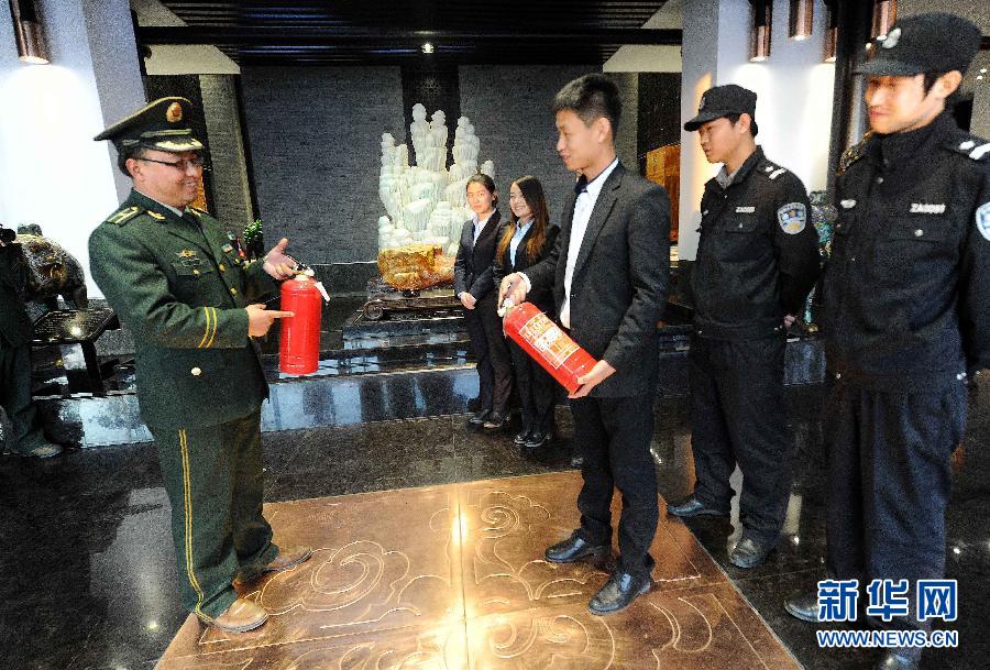11月17日,河北大城县公安消防大队对红木文化产业新城工作人员进行消防安全知识培训。为进一步加强广大群众消防安全意识,预防火灾事故的发生,河北大城县公安消防大队近日在红木文化产业新城组织开展灭火救援实战演练活动,并开展消防大检查,进一步筑牢红木古典家具产业基地的消防安全“防火墙”。新华社记者李晓果摄