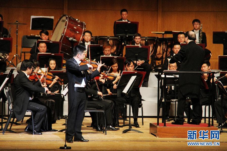 11月16日,在韩国首尔国立剧场,中央歌剧院小提琴家杜玄在演奏《化蝶》。新华社记者彭茜摄