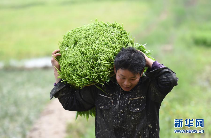 11月16日,在南宁市仙葫开发区那舅社区那平村,一名菜农扛着刚刚采摘的青菜走出菜地。近年来,广西依托自身独特的光热条件,在这“多出的一季”里主抓冬粮、冬菜、冬药、冬果等特色品类的秋冬种,抓出一个保障全国淡季果蔬供应的重要“菜篮子”基地,为稳粮增收提供了重要支撑。记者从广西农业部门了解到,2013年广西秋冬种农业产值510多亿元,农民人均秋冬种产值收入约1960元;2013年广西秋冬粮食产量145万吨,占全年粮食产量的9.5%。自治区农业厅厅长谢泽宇介绍,2014年要继续稳定秋冬种作物面积2500万亩,其中稳定秋冬菜面积1400万亩。新华社记者陆波岸