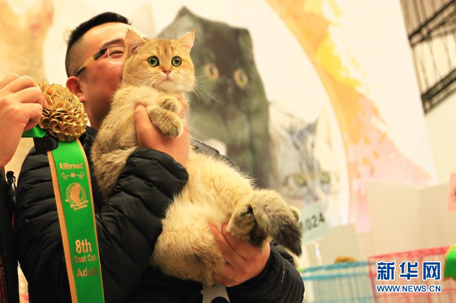 11月15日,评委在为获奖的“喵星人”颁奖。当日,“哈尔滨第三届名猫公开赛”在冰城举行,五十多只名猫前来参赛。据介绍,本次赛事分为成猫组和幼猫组,评委将从血统、健康、美观程度、性格等多方面进行打分,分别评出名次再评出总冠军。新华社记者 马知遥 摄
