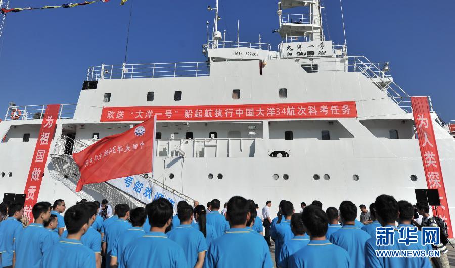 11月16日,相关参航单位代表为大洋34航次全体科考队员举行送行仪式。新华社发(杨冠宇 摄)