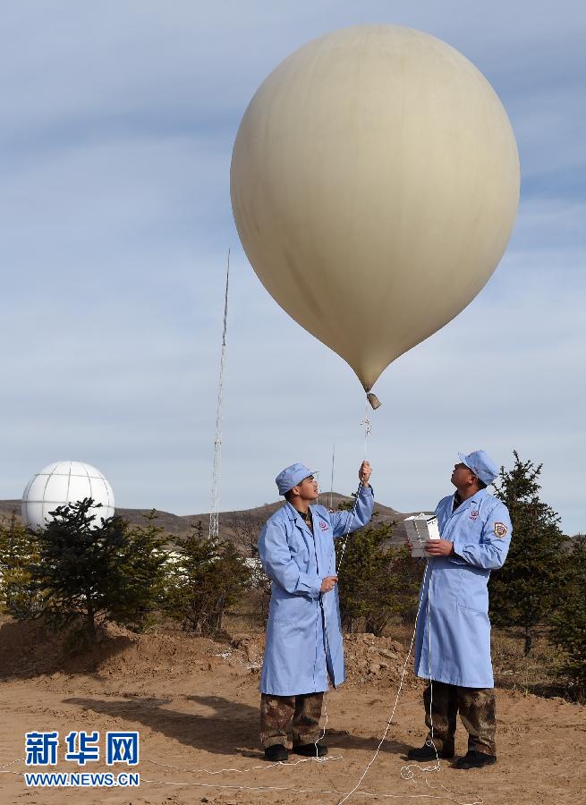 11月14日,在遥感卫星二十三号发射前夕,太原卫星发射中心气象台的工作人员放气球对25000米高空进行探测,主要探测高空风向,风速,温度,湿度和气压等。 11月15日2时53分,我国在太原卫星发射中心用长征二号丙运载火箭,成功将遥感卫星二十三号送入太空。来自气象部门的专业气象服务保障团队为卫星发射提供了精确的实时气象信息,确保发射任务圆满完成。新华社记者 燕雁 摄