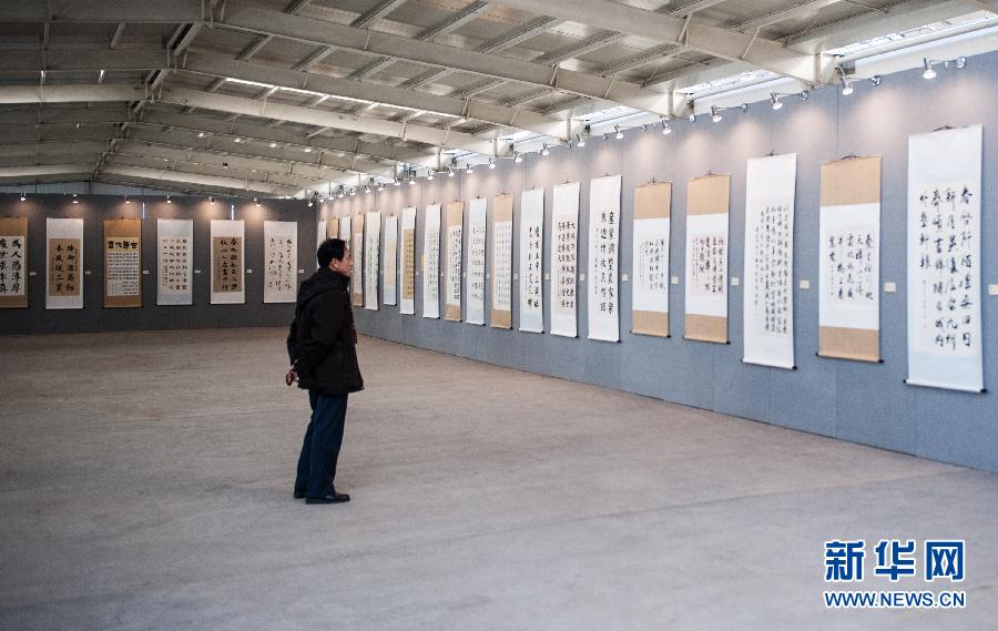 11月15日,一位参观者在第五届北京美丽乡村书法艺术展上欣赏作品。当日,由北京市文联、北京书协、北京市密云县县委、县政府主办的“美丽密云”第五届北京美丽乡村书法艺术展在北京密云开幕,共展出来自京郊10个区县的书法作品165幅。据悉,第六届北京美丽乡村书法艺术展将于明年在平谷举办。新华社记者 李琰 摄