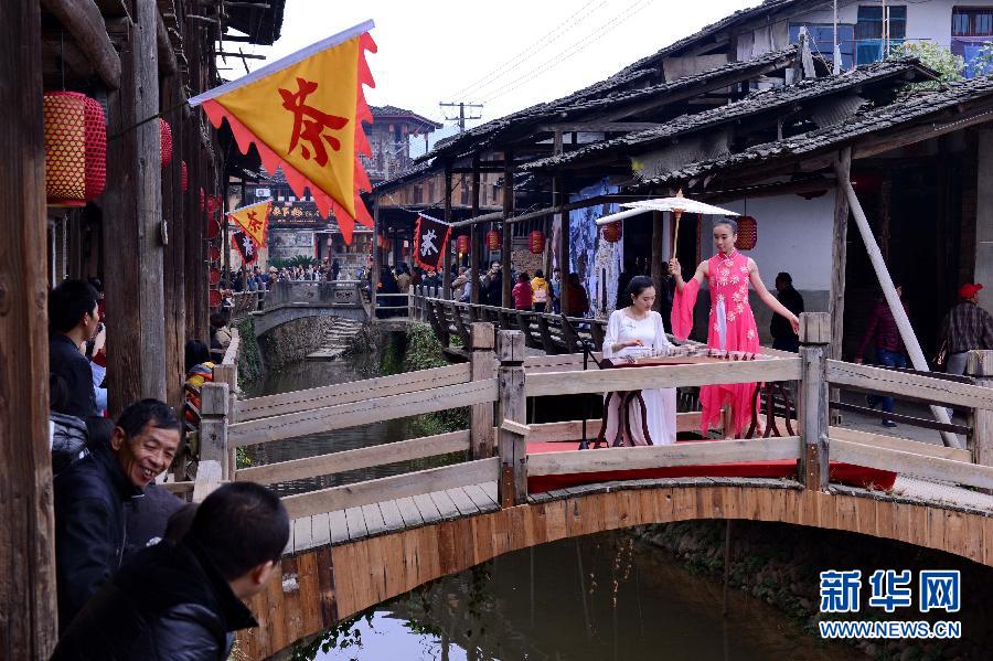 11月15日,茶农在“万里茶道”起点武夷山下梅村展示昔日茶叶交易繁忙景象。当日,第三届“万里茶道”与城市发展中蒙俄市长峰会在福建武夷山举行,三国50余个城市的代表参会。始于17世纪末,以武夷山下梅村为起点的“万里茶道”经由中国八省和蒙古,直至俄罗斯圣彼得堡,是与汉唐“丝绸之路”、西南“茶马古道”、宋元“海上丝绸之路”齐名的一条中西方物质文化交换国际大通道。新华社记者 张国俊 摄