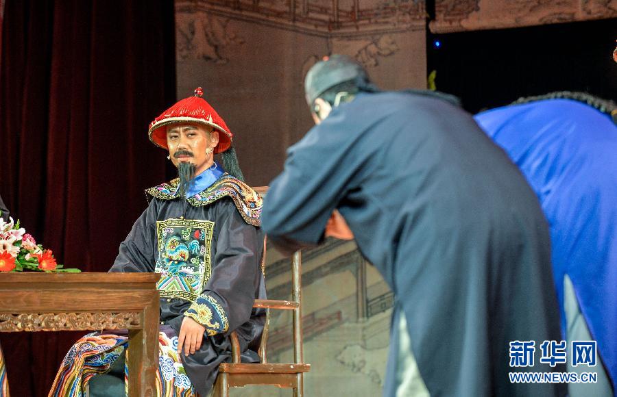 11月18日,剧中的林则徐(左)抵达良乡,当地乡绅前来参拜。当日,新编廉政题材历史话剧《林则徐传牌良乡》登上北京剧院的舞台。该话剧分为六幕,讲述了钦差大臣林则徐奉旨南下查禁鸦片前,向京畿良乡县(现北京市房山区)发出一道公文,直言拒绝沿途州县的宴请和迎送,更不许部下索贿受贿的故事。新华社记者张宇摄