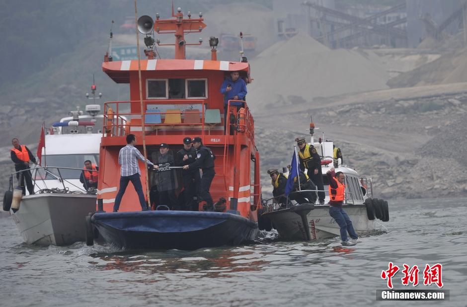 11月21日,为进一步提升水上突发事件应急处置与救援能力,维护嘉陵江重庆主城段水域通航安全,重庆交通执法直属支队联合公安水警、港航等部门开展了“平湖2014”应急抢险救援演练。演练以渝北碚渡0007船舶行至澄江水域江心时,突然失去动力,船舶出现打流,一男子持刀把守机舱通道威胁不让人靠近。交通执法、水警、海事等部门接警后,多方合作对事故船舶进行联合救援。演习内容包括:发生落水人员紧急施救、船舶乘客转移、水上反恐、涉险船舶拖移停靠等。通过实战性演练,提高各部门联动协作水平,增强水上交通应急处置能力。陈超 摄