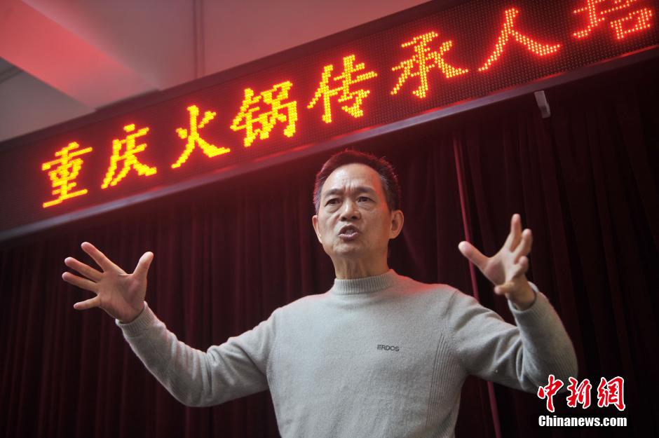 11月25日,40余名火锅企业老板报名参加了重庆火锅学院第一堂理论培训课,这也是火锅学院开学前的一次模拟实战培训。据悉,重庆火锅学院由重庆市火锅协会、重庆市烹饪协会和重庆现代职业技师学院联合筹建,2015年春季正式开学。图为重庆火锅协会会长李德健讲解火锅理论。陈超 摄