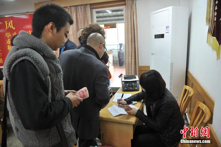 11月25日,40余名火锅企业老板报名参加了重庆火锅学院第一堂理论培训课,这也是火锅学院开学前的一次模拟实战培训。据悉,重庆火锅学院由重庆市火锅协会、重庆市烹饪协会和重庆现代职业技师学院联合筹建,2015年春季正式开学。图为学院排队报名。陈超 摄