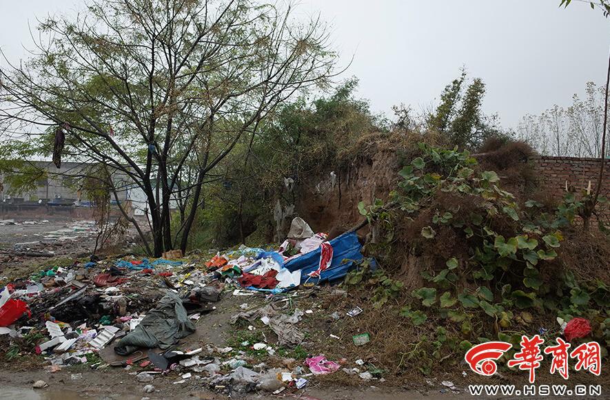24日中午,华商网编辑来到西安新北城农副产品批发市场,在市场东侧的一排大棚后看到了网友帖子中所说的遭到破坏的城墙。该段城墙约有400米长、3米多高、土质结构,表面几乎被植物覆盖,城墙西侧是西安新北城农副产品批发市场,东侧是一个物流仓储中心。城墙西侧还有少量垃圾存在,由于下雨,小道十分泥泞。城墙东侧则被铁皮围挡,每隔一段有一个小门开启,上面贴着一张通告:“遗址区内禁止乱扔垃圾,禁止随地大小便”。