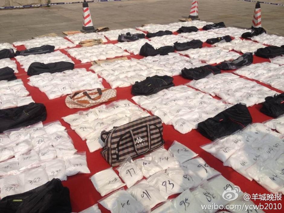 据羊城晚报官方微博11月26日报道,今日上午,惠州警方展示近日缴获的1733千克毒品氯氨酮(俗称K 粉)。该地连续捣毁3个制毒工厂,抓获53名犯罪嫌疑人。据介绍,现在K 粉市价一公斤约2.2万元,1.7吨多毒品市值3000多万元!图片来源:羊城晚报官方微博