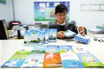 11月26日,在盐池县城关街道办事处北关社区,工作人员正在整理创建全国文明县城宣传手册,到此办理业务的每名群众都能免费领取到这样一套制作精美的小册子,该手册内容包含文明礼仪、环境卫生、社会保障等。 记者 丁建峰 杨之汀 摄