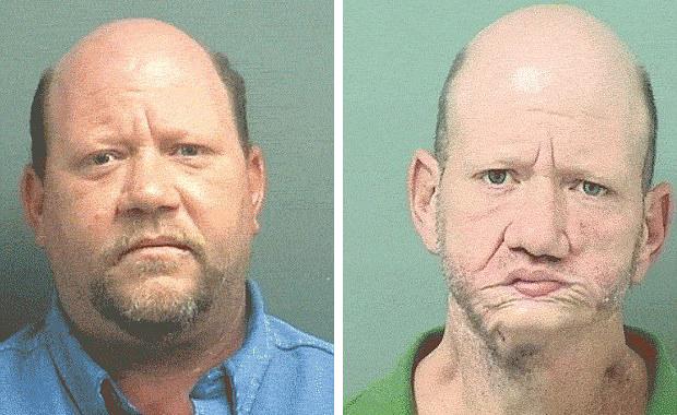 图中的男子2009年未沾染毒品时(左),是一个体格魁梧面色红润的人,吸毒5年后(右),面无血色,脱发严重,牙齿全掉光了,面颊深陷。(网页截图)
