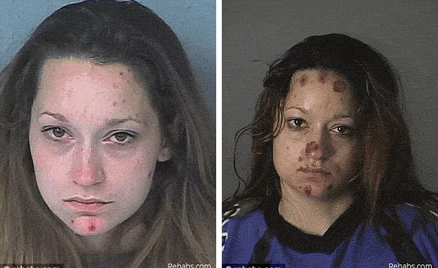 图为一名止痛药(含吗啡)上瘾的女子,她服用毒品仅一年,脸上已经满是疮痍。(网页截图)