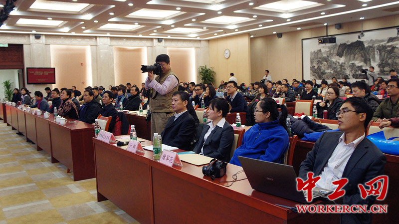 全总书记处书记、法律部部长郭军,北京市总工会党组副书记、副主席王玉英,全总法律部副部长孙文彬,北京市总工会副主席王永浩,全总法律部综合处处长金华勇以及十六支参赛代表队一同参加了知识竞赛活动。中工网记者 葛姗 摄