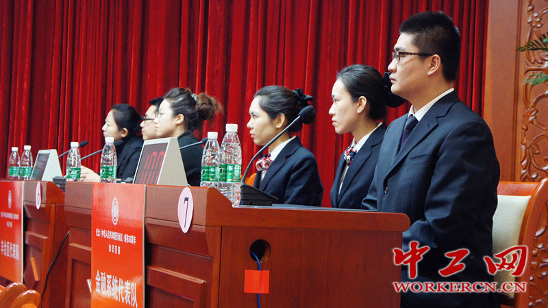 知识竞赛内容包括《劳动法》、《工会法》、《劳动合同法》、《工伤保险条例》,全市200余名工会干部、职工代表到场观看了知识竞赛。中工网记者 葛姗 摄