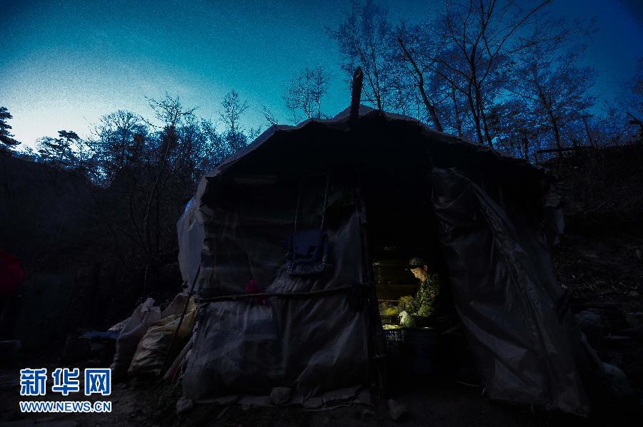 早晨6点半,王清晨在金丝猴投食点旁搭盖的棚子里给金丝猴准备早餐(12月4日摄)。在陕西秦岭山中有一种职业叫“唤猴人”,他们用声音和金丝猴沟通,把深山里的金丝猴唤到开阔地,给它们投喂食物。陕西宁陕县皇冠镇朝阳沟金丝猴投食点的王清晨就是一名“唤猴人”。今年48岁的王清晨,年轻时在老家周至县给动物研究及保护机构的人员当向导,20多年来对了解野生动物的习性有自己独特的方法。2010年底王清晨开始在皇冠镇朝阳沟进行野生金丝猴的唤猴投食工作。唤猴是个技术活也是个苦差事,在花费了3个月时间不断接近了解猴群后,王清晨终于有了70多只金丝猴朋友。每天清晨5点半,王清晨就得上山深入林中找到前一天晚上猴群的栖息地,用自己独特的方法呼唤它们,将它们引向固定的投食地点。一天中的8点、13点、16点分3个时间段给金丝猴喂食,傍晚再追随着猴子们的踪迹了解猴群去向。夏秋季节山林里食物丰富,只有极少数的猴子会到投食点觅食;而冬天食物匮乏时,大部分猴子一日三餐都来投食点。虽然现在有弟弟和儿子协助自己干活,但由于猴子们只听王清晨一人的呼唤,所以一年里不管刮风下雨,王清晨几乎每天都要进山。这个职业很辛苦,但王清晨也乐在其中。据他讲,目前整个陕西的“唤猴人”也不过三四个。新华社记者刘潇摄