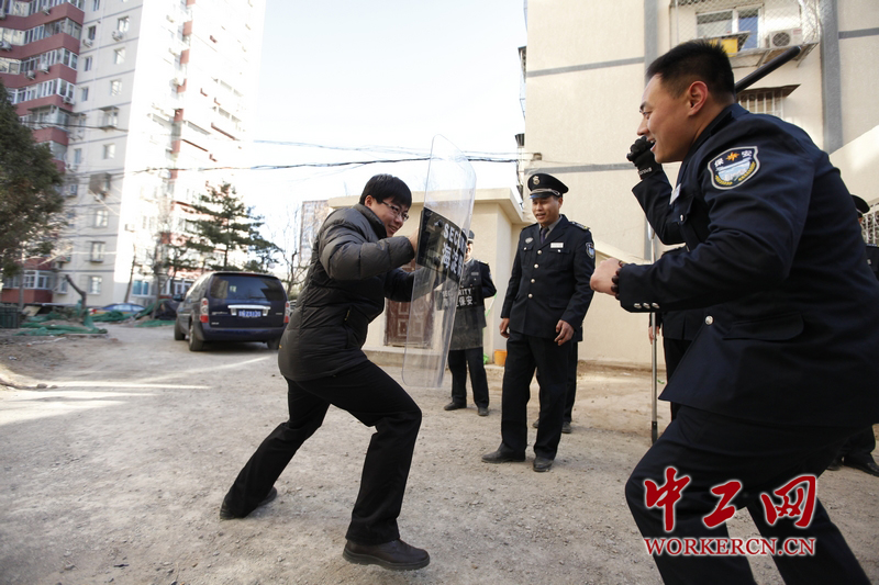 网友观看保安训练,并亲身体验安保设备。中工网记者韩靖摄