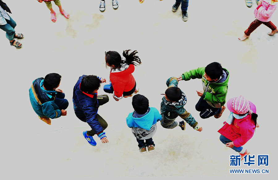 在广西大化瑶族自治县七百弄乡弄雄小学,学生们在操场上跳绳(11月13日摄)。