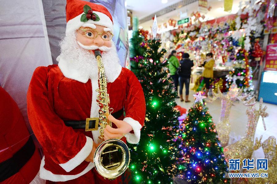 随着圣诞节的临近,宁夏银川市各种圣诞饰品开始热销。 新华社记者王鹏摄