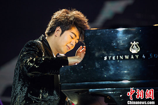 12月14日晚,2015郎朗新年音乐会在重庆人民大礼堂奏响。郎朗与北京当代芭蕾舞团的舞蹈艺术家进行全新的艺术跨界表演合作,成为本次音乐会的一大看点。孙可夫 摄
