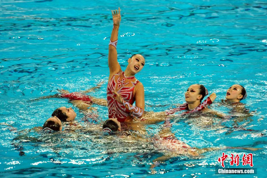 2014年12月14日,2014第九届国际泳联花样游泳大奖赛在北京完美收官。图为中国选手在比赛中。 中新社发 李成 摄