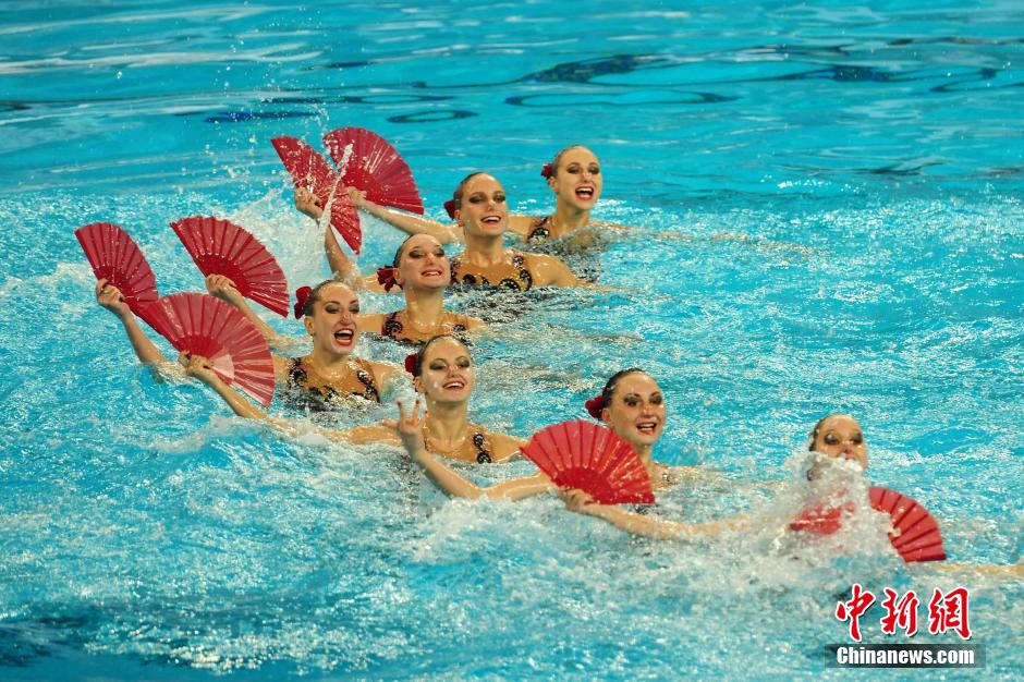 2014年12月14日,2014第九届国际泳联花样游泳大奖赛在北京完美收官。图为俄罗斯选手在比赛中。 中新社发 李成 摄