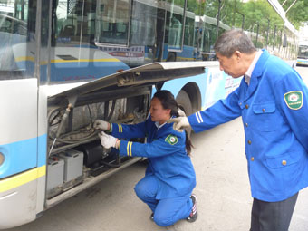 “廖娟是1992年进的车队。当时,他们那一批一共12个人,都跟过我学徒。刚开始,廖娟在这些人中并不突出,但一件事一下子让我认定了她。那年的冬天,北京的雪下得很大,路上的积雪很多,行车过程中经常会出现各种状况。当时廖娟还在实习,我这做师傅的那天跟班,当行车到安慧桥时,路已经非常滑了,加上桥的坡度又大,一般的司机到这时候都犯怵。可在那天,廖娟的车却开得非常稳,顺顺当当地过了桥,一点也没出现新司机碰上情况就慌里慌张的毛病。”说起徒弟廖娟给自己留下的最初印象,郭师傅至今还记忆犹新,尤其是她的灵气更是让郭师傅印象深刻。在那之后,郭师傅更是言传身教,廖娟的进步也非常快,在他们同时进队的小伙伴中,第一个开始坐正班。